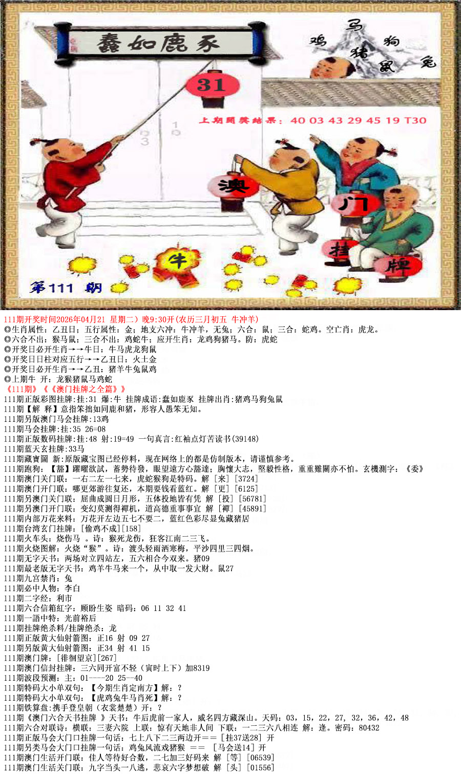 111期必中三码 46.26.04 ‖開:?00‖准