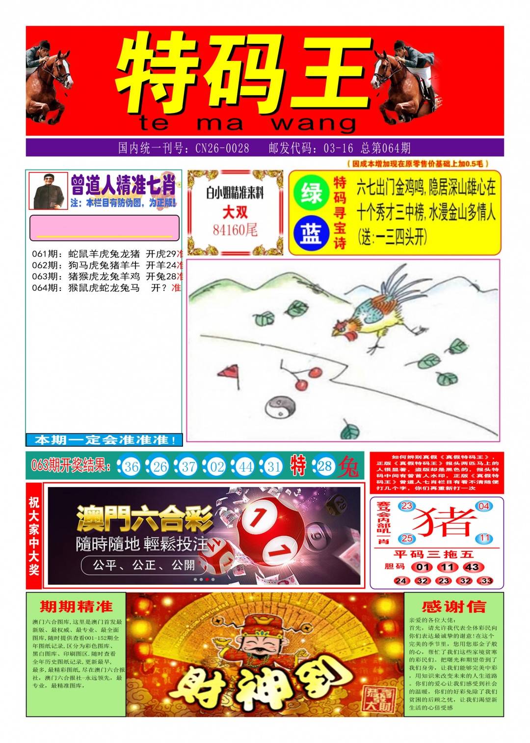 063期必中三码 18.41.28 ‖開:兔28‖准